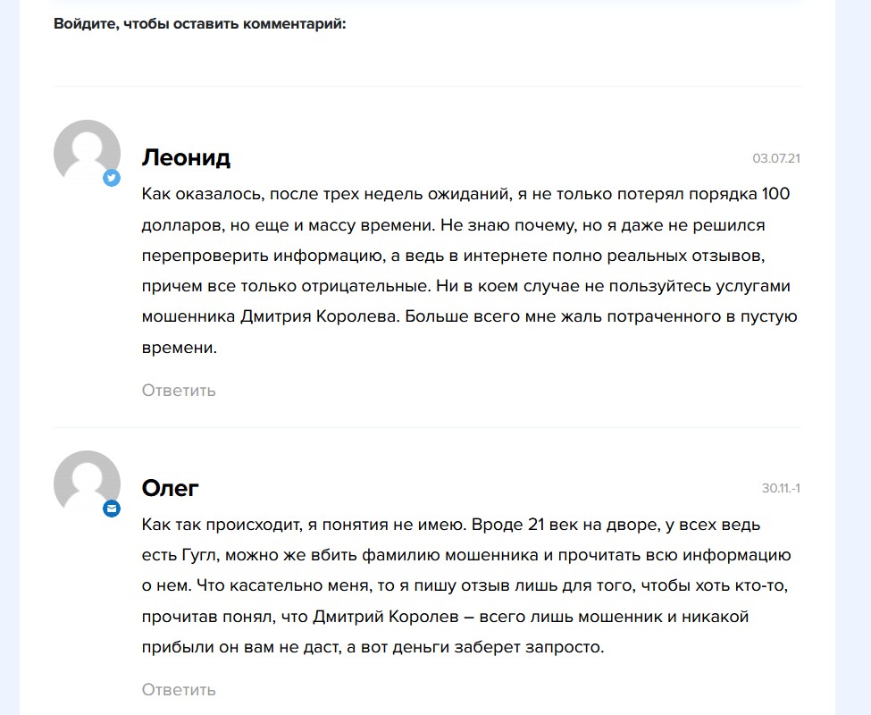 Чтобы понять, чем же на самом деле занимается Дмитрий Королев, нам было достаточно первого встречного отзыва.