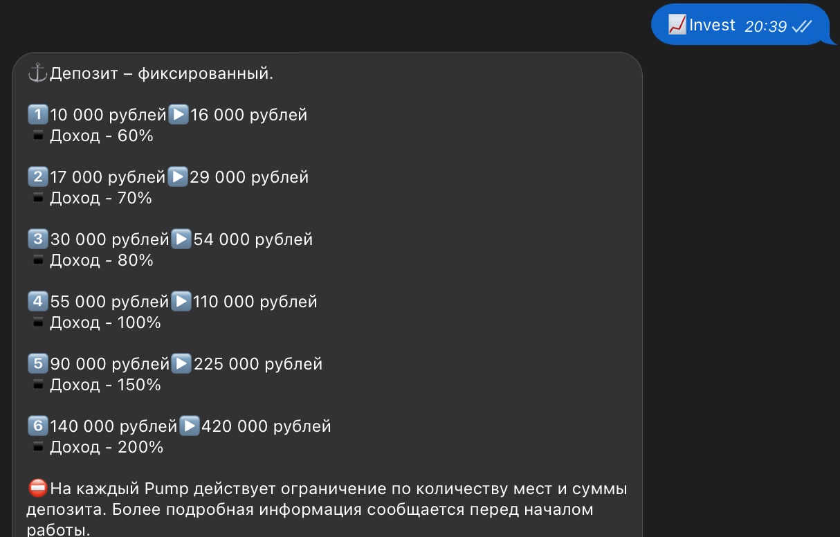 так а какой смысл? если ты не идиот, то будешь кидать деньги и на следующий памп, и они могут за счет этого пампит монеты еще сильнее, и будет больше прибыль для них, а со 100 долларов, они сильно не разбогатеют